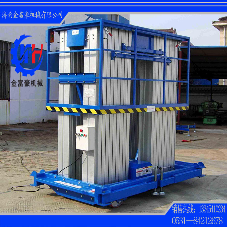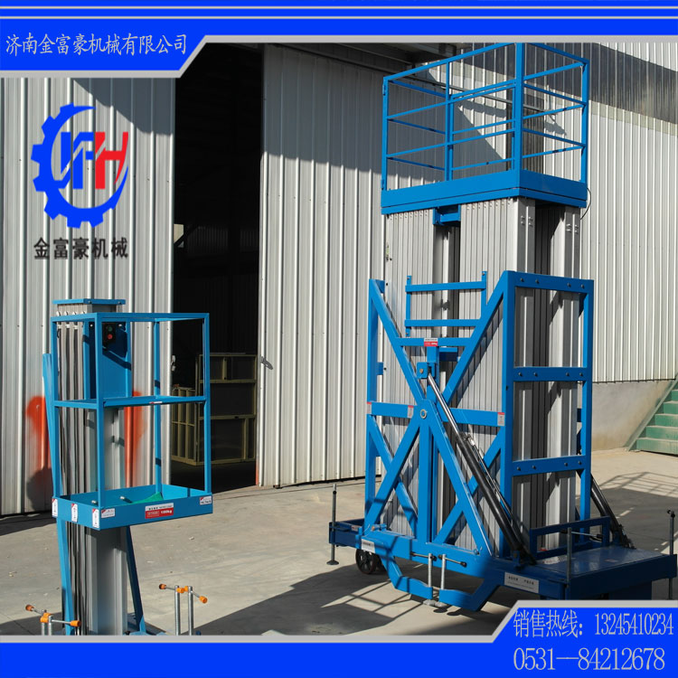 濟南金富豪機械設備有限公司生產(chǎn)的鋁合金升降平臺采用四桅柱式結(jié)構(gòu),穩(wěn)定性極好,運轉(zhuǎn)靈活,載重量大,平臺面積大,推行方便。它輕盈的外觀,能在極小的空間內(nèi)發(fā)揮最高的舉升能力。使升降臺的偏轉(zhuǎn)與擺動極小??捎米麟娏€路、照明電器、高架管道等安裝維護,高空清潔等單人工作的高空作業(yè)。